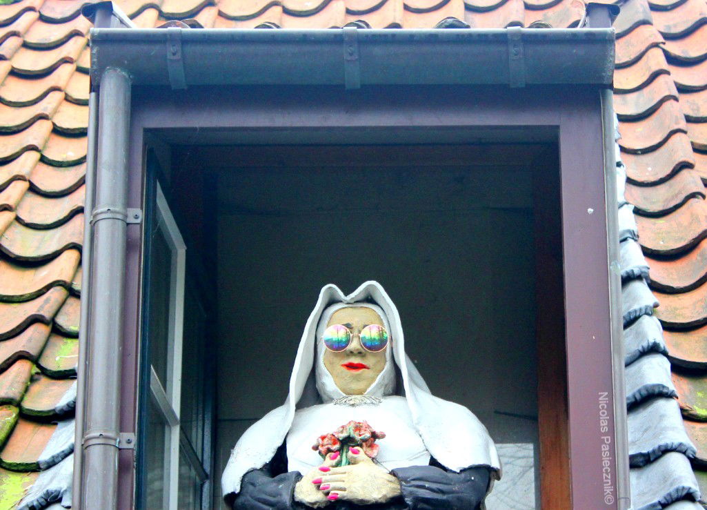 Teniendo en cuenta que la ciudad se volvió desde hace años un destino turístico, sus habitantes comenzaron a decorar sus casas para dejar una buena impresión en los visitantes. Así es como se pueden observar diferentes jardines con flores cuidadosamente seleccionadas, pequeñas esculturas, fuentes o hasta algunas intervenciones graciosas como la de esta casa que exhibe una monja en pael maché y que toma sol desde una buhardilla que da a la calle.