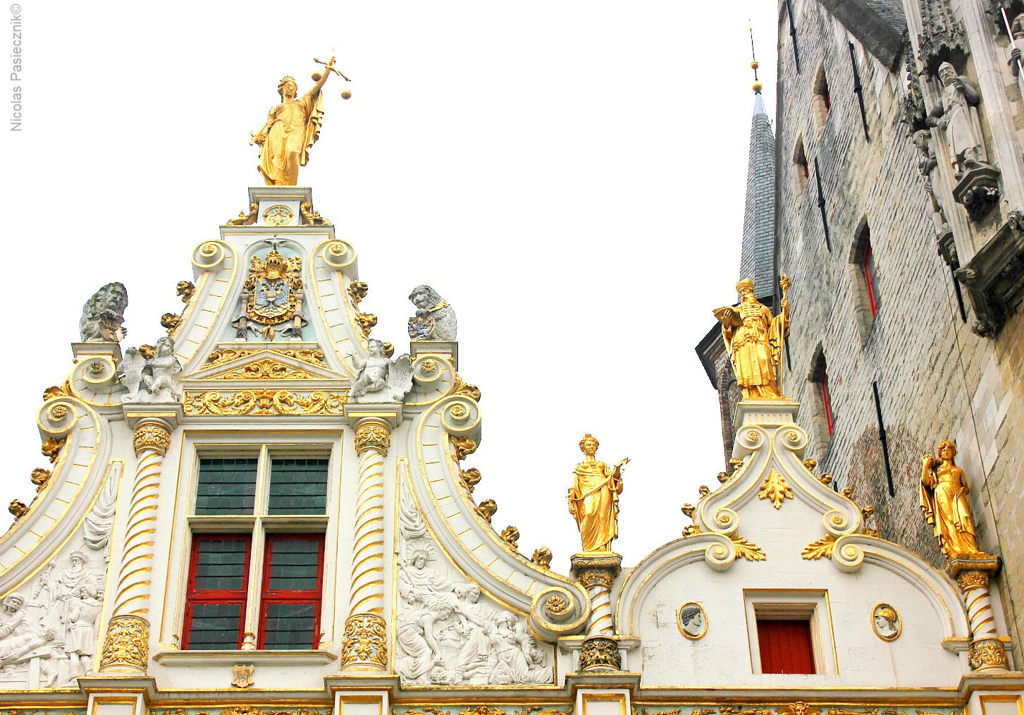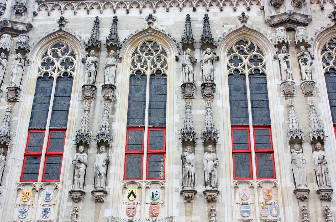 Personajes más importantes de la vida política de Brujas engalanan la fachada principal del edificio.