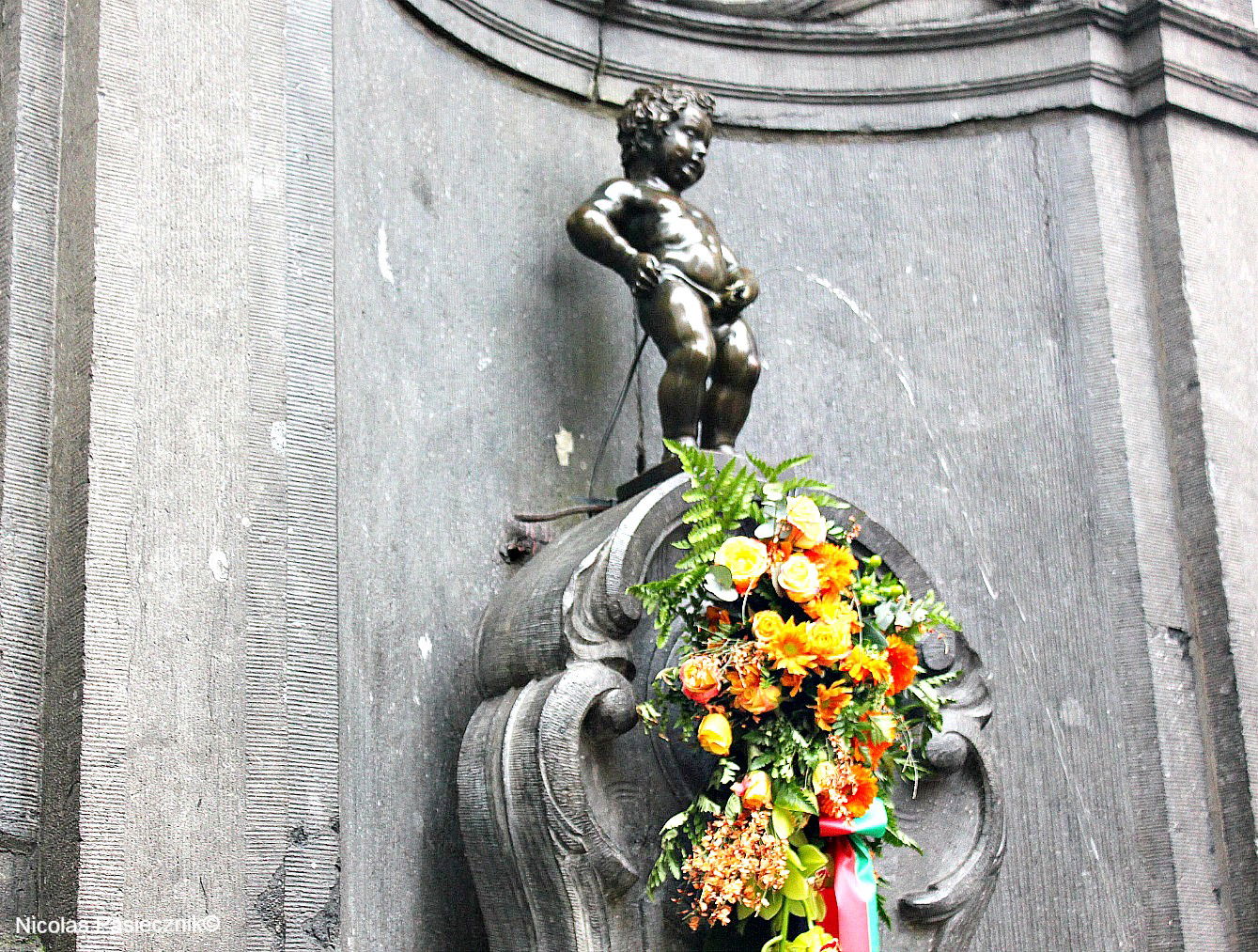 La estatua de bronce que data de 1619 se exhibe en una famosa esquina del casco histórico de Bruselas, cerca de la Grand Place.
