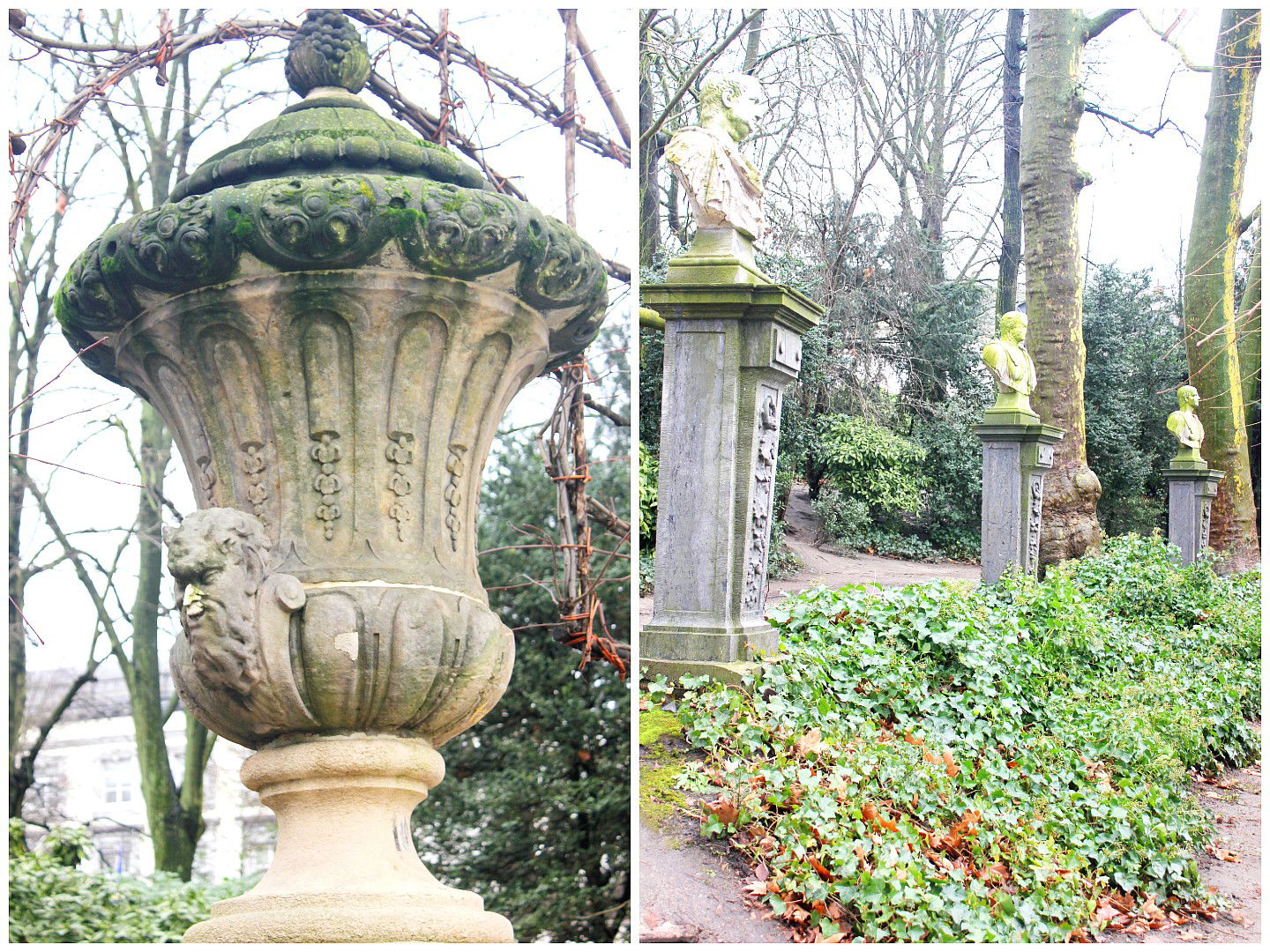 Bustos de emperadores y filósofos romanos también se hacen presentes en el parque