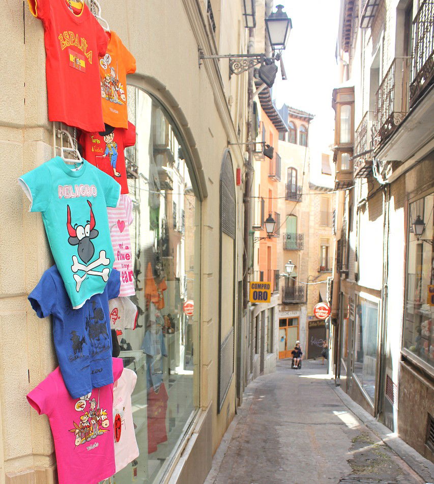 Las remeras ("Sudaderas" en español) que reproducen íconos de la cultura española tales como el flamenco, el toro, el Quijote o algunas siluetas de los edificios y templos más importantes de la ciudad se exhiben en escaparates y exteriores de los negocios dedicados a la venta de souvenirs. Sin dudas, junto a los imanes y las tazas estas prendas son el objeto predilecto cuando se piensa en elegir un recuerdo.